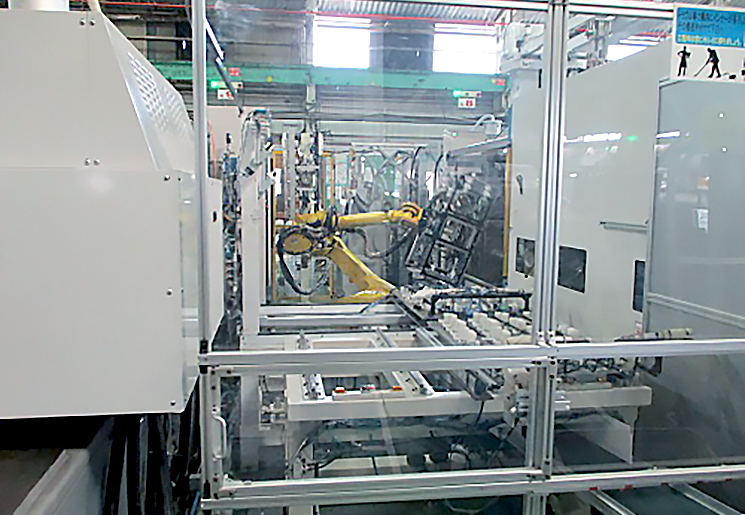 またロボットを多用し、複雑なインサートや取出し作業の自動化を行っています。